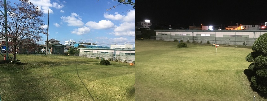 全長110ydの開放型の打ちっぱなしです。市内にも関わらず開けた空へ向けての練習は実際よりも広く感じられるでしょう。総天然芝、目標グリーンを設置してあり、周囲の山茶花もあって疑似的にコースにいるような心地よさを提供いたします。春夏秋冬、季節に応じて表情を変える練習場が皆様をお待ちしております。